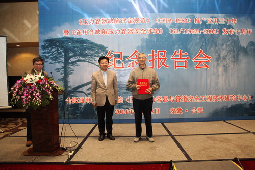 12月28日,我院和國家壓力容器與管道安全工程技術研究中心在合肥隆重舉辦了《壓力容器缺陷評定規范》(CVDA-1984)推廣應用三十年暨《在用含缺陷壓力容器安全評定》(GB/T19624-2004)發布十周年紀念報告會?!秹毫θ萜魅毕菰u定規范》(CVDA-1984)是我國第一部壓力容器合于使用評價規范,由我院牽頭二十家單位共同編制,于1984年正式發布。規范編制組由浙江大學王仁東教授任組長,化學工業部化工設備總公司副總工程師魏立藩、機械工業部合肥通用機械研究所副總工程師李澤震任副組長。GB/T19624-2004是在李學仁、陳鋼等主持完成的八五攻關課題的基礎上,經十年推廣應用形成,由鐘群鵬院士、李培寧教授牽頭,國內包括原CVDA編制單位共同參加完成。